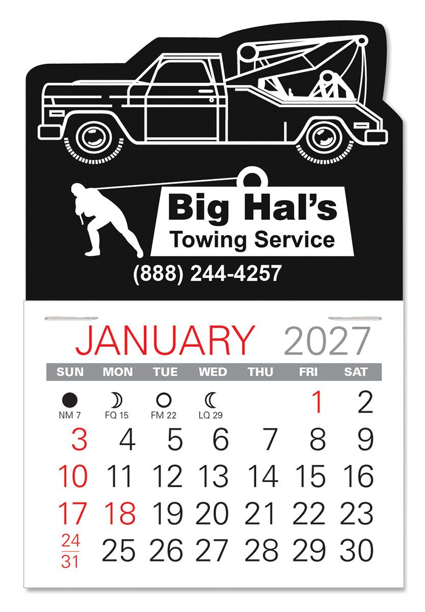 The Industry’s #1 Adhesive Calendar! Low cost, self-adhering Two Truck stick-on calendars can go anywhere and are the ideal way to keep your name in front of customers and prospects all year long. Available in 6 vinyl colors for most any business.