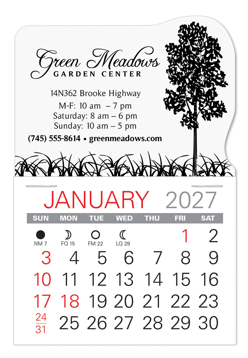 The Industry’s #1 Adhesive Calendar! Low cost, self-adhering, Landscape design stick-on calendars can go anywhere and are the ideal way to keep your name in front of customers and prospects all year long. Available in 6 vinyl colors for most any business.